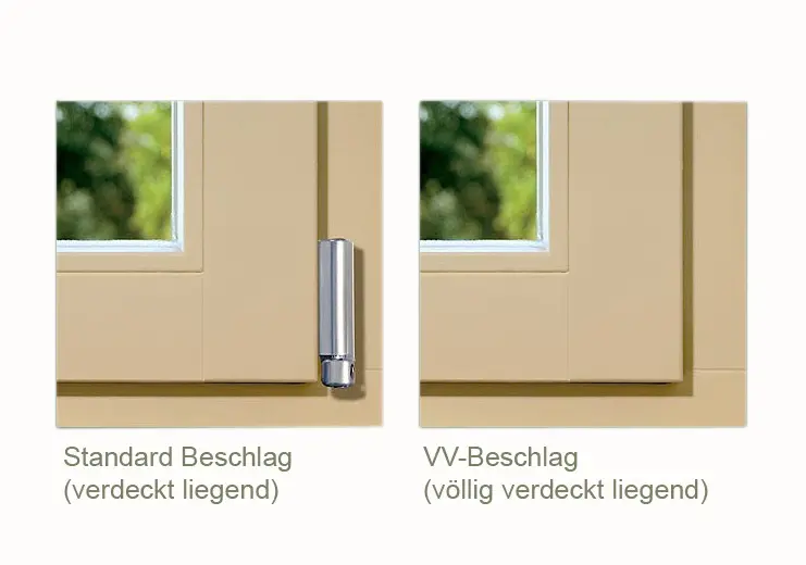 - Keine sichtbaren Beschlagteile und somit auch alle Ecklager verdeckt im Fensterfalz liegend.