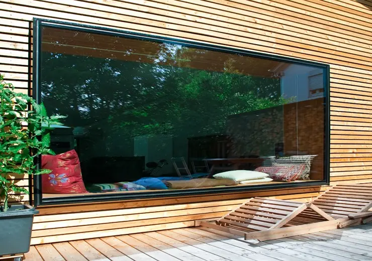 Natur-Holz innen für Wärme, wetterfeste Aluminiumschale außen: Ultimativer Schutz und minimaler Pflegeaufwand.