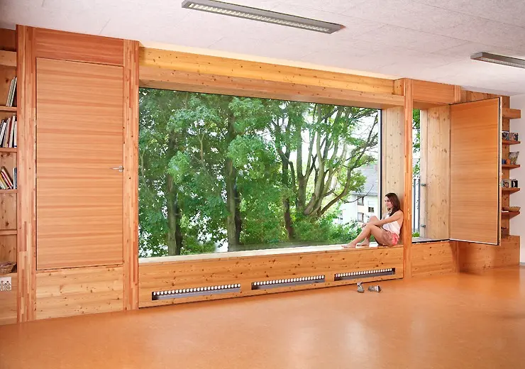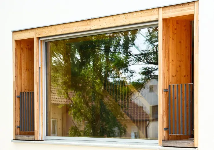 - Verglasung: 3-fach-Wärmeschutzglas bis 56 mm, optional Sicherheits-, Schallschutz- oder Sonnenschutzglas